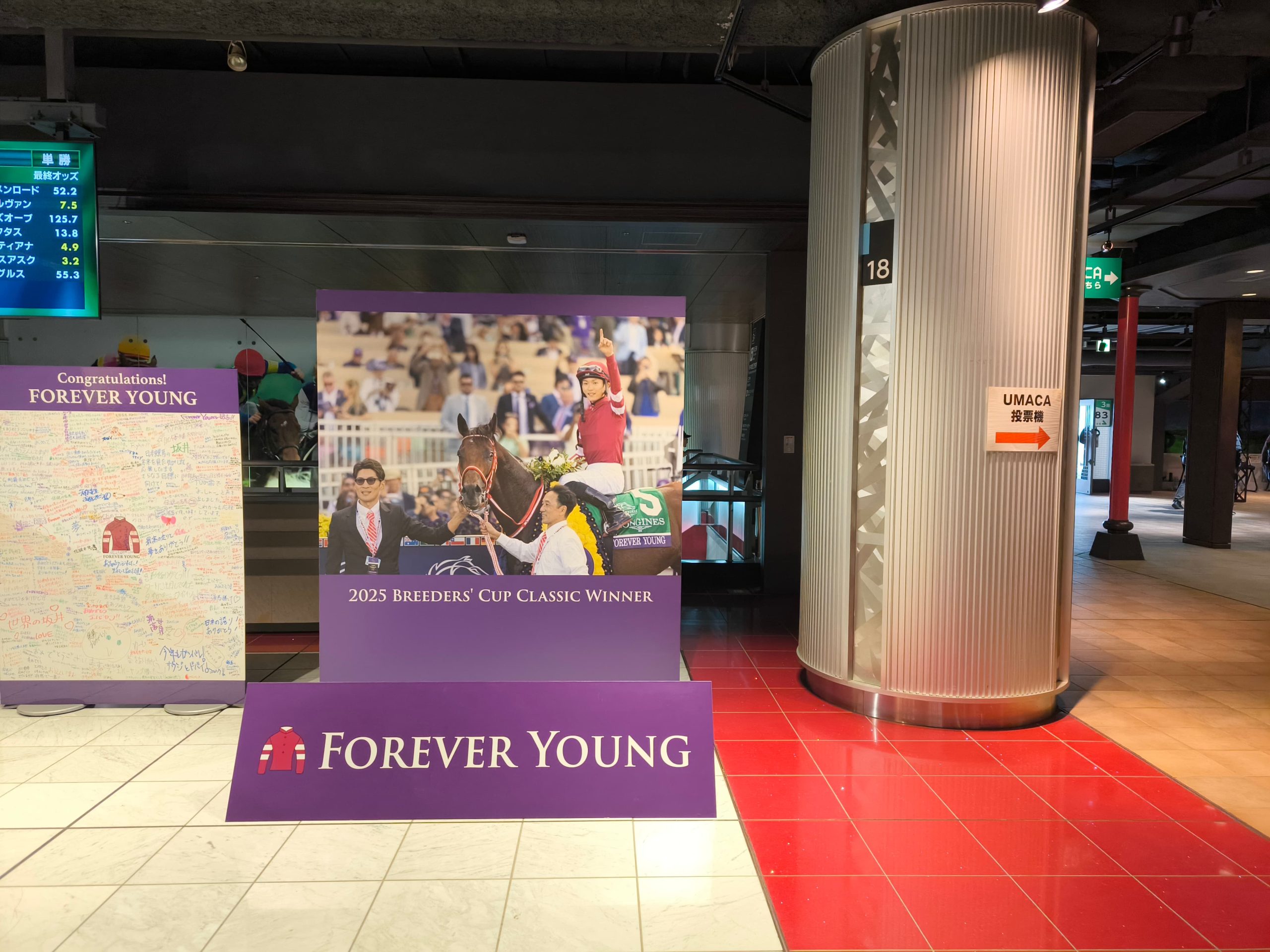画像は2月10日の東京競馬場に行った時のフォーエバーヤングのBCクラシック勝利記念の展示。