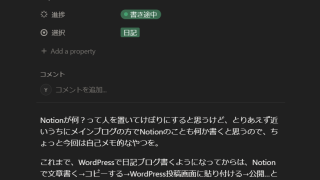 思ったこと Notionで書いた文章を、WordPressに反映するようにしてみた Notioって何?って人を置いてけぼりにすると思うけど、とりあえず近いうちにメインブログの方でNotionのことも何か書くと思うので、ちょっと今回は自己メモ的なやつを。これまで、WordPressで日記ブログ書くようになってからは、Noti... 2026.04.17 思ったこと